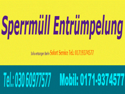Wenn der Kunde uns telefonisch Entrümpler Sperrmüll Möbelentsorgungen Berlin kontaktiert, können telefonisch alle Details zur Sperrmüllabholung 247 von Sperrmüll in besprechen. Es wird preiswert sein.